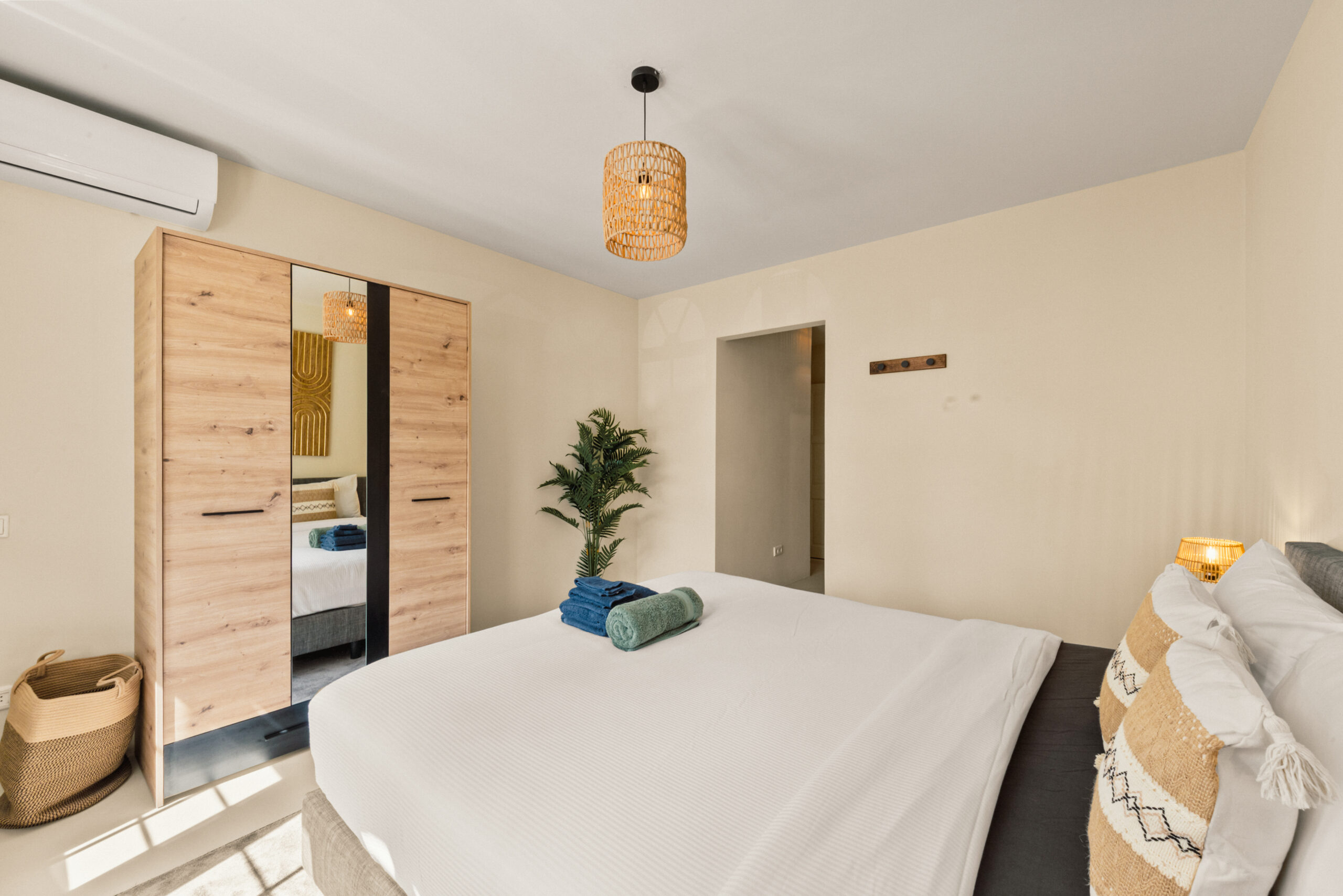 Marina Apartment A2 is stylishly furnished and offers all the comfort you need for a carefree stay. The apartment features two spacious and tastefully decorated bedrooms, both equipped with comfortable beds and ample closet space. The modern bathroom is neatly finished and fully equipped. This makes the apartment ideal for families, couples, or friends looking to enjoy a relaxing vacation in Curaçao.